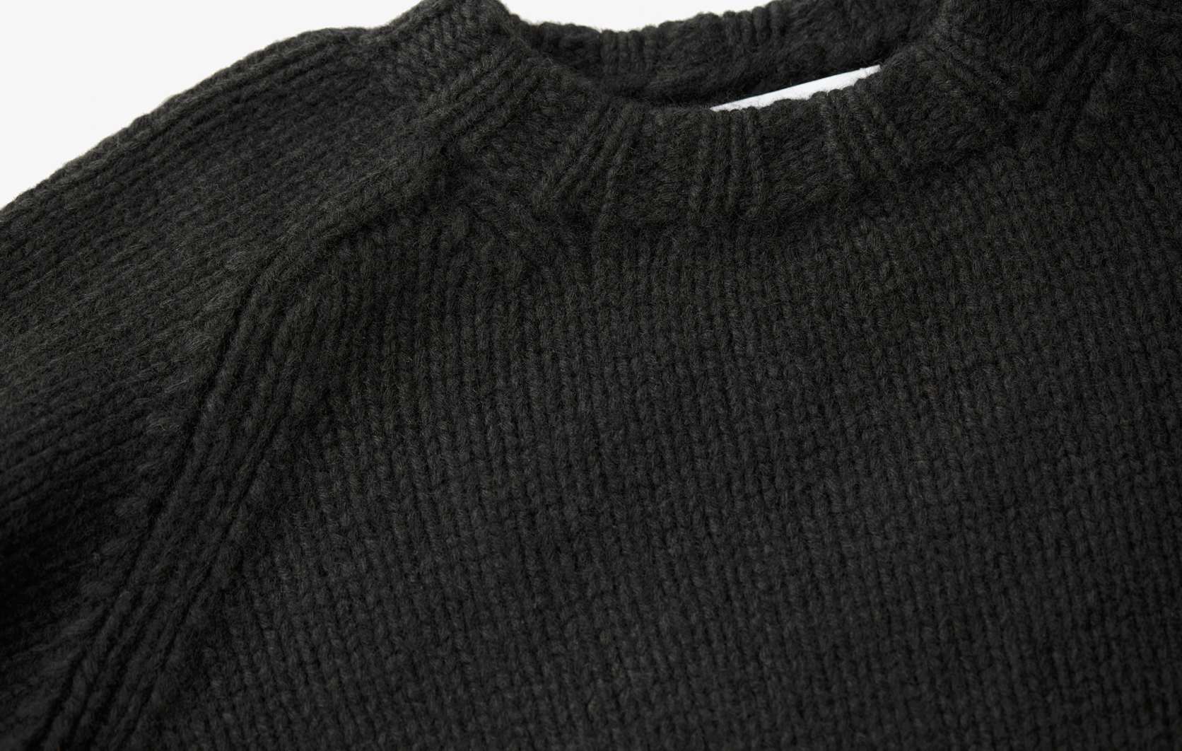 セーターと同色で、刻印のように入るイニシャルです。ご自分のために編まれたセーターである印を、ここにどうぞ。