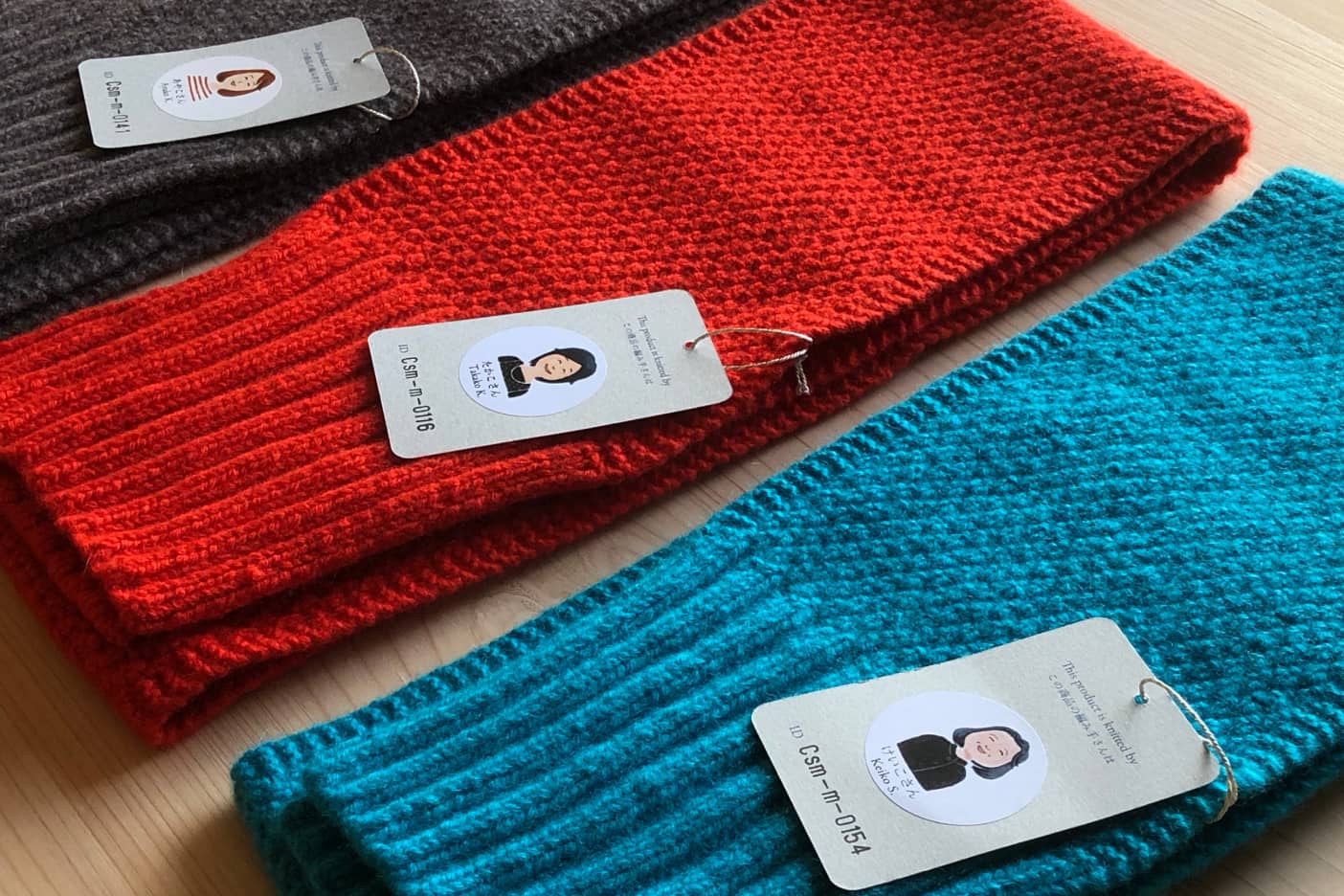 気仙沼ニッティングのカシミヤマフラーは、気仙沼の編み手がひとつひとつ手編みをしてつくっています。